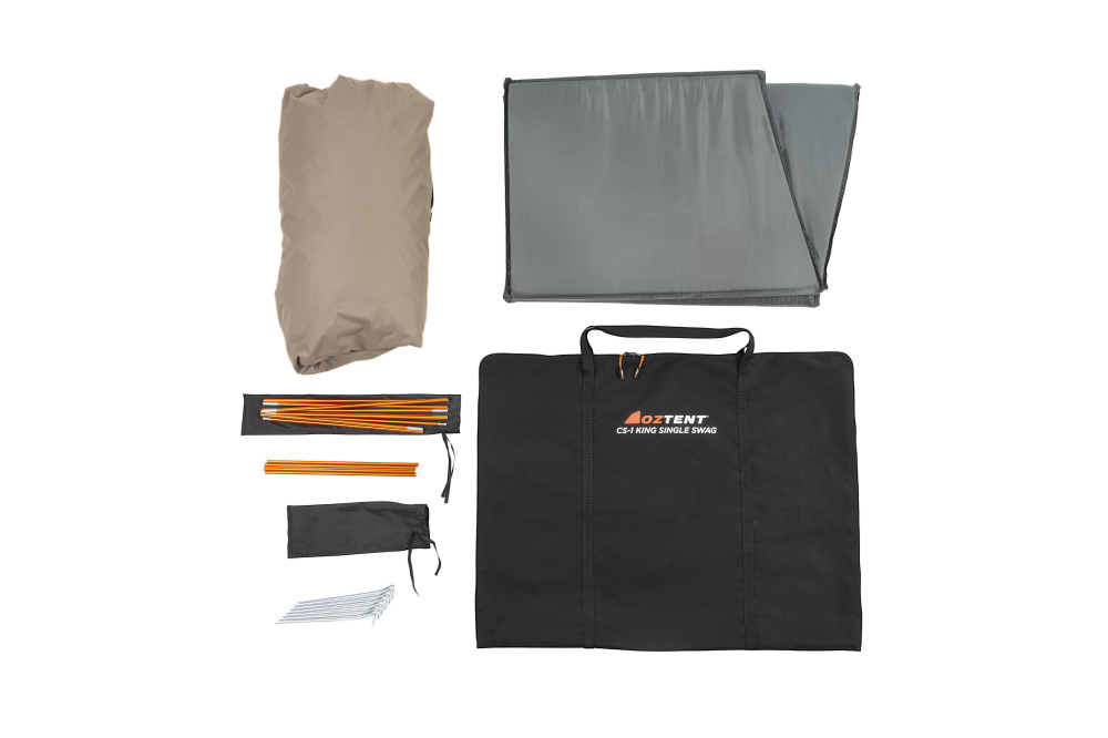 The CS-1 King Single Swag is a lightweight, compact shelter designed for solo adventurers. It packs down small without compromising on comfort, offering a roomy, breathable interior for a restful night’s sleep.