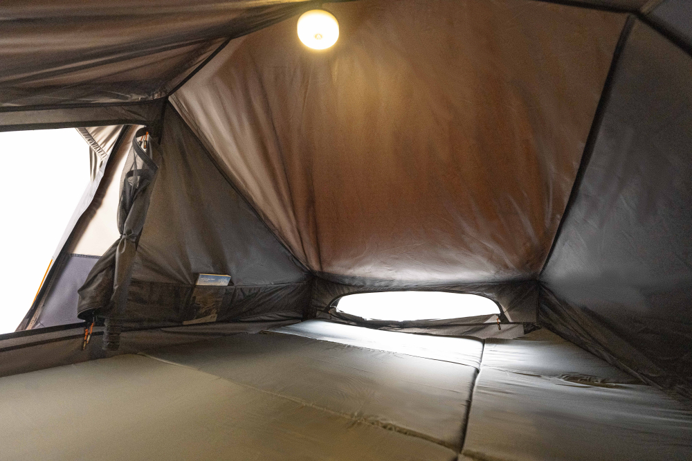 Constructed from Oztent’s durable, light-diffusing CT-Tex™ fabric, it offers a darker interior for early morning sleep-ins. A large front vestibule provides covered gear storage, with a floor extension and a rain-covered zipper opening for protection in wet weather.