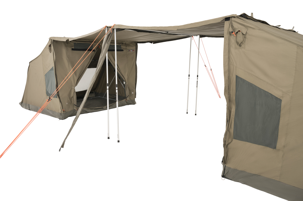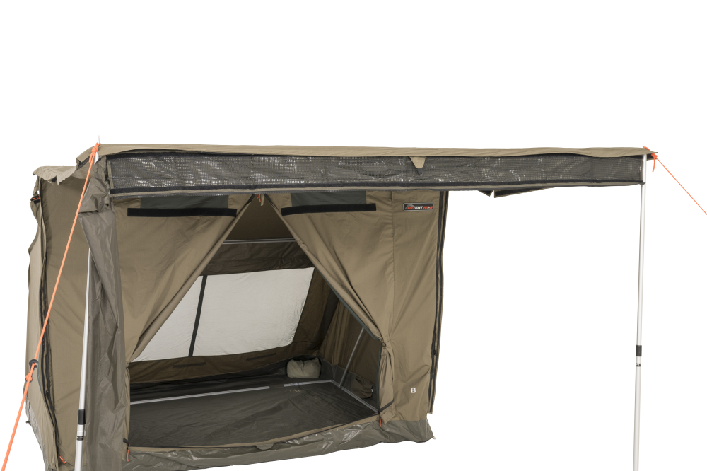 The OZTENT Awning Connector is a stunningly simple innovation that allows you to zip two OZTENT tents together, awning to awning. This is great when travelling with a family as it allows you to have two separate rooms (one for the kids) with a large undercover area in between.