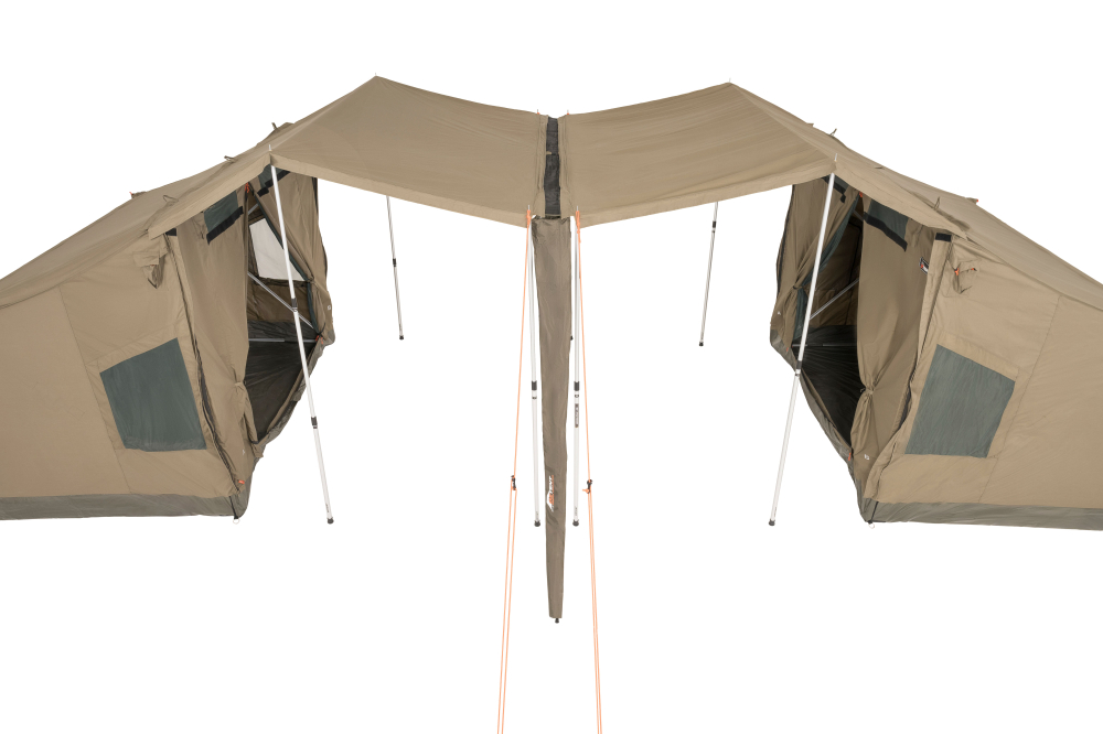 The OZTENT Awning Connector is a stunningly simple innovation that allows you to zip two OZTENT tents together, awning to awning. This is great when travelling with a family as it allows you to have two separate rooms (one for the kids) with a large undercover area in between.