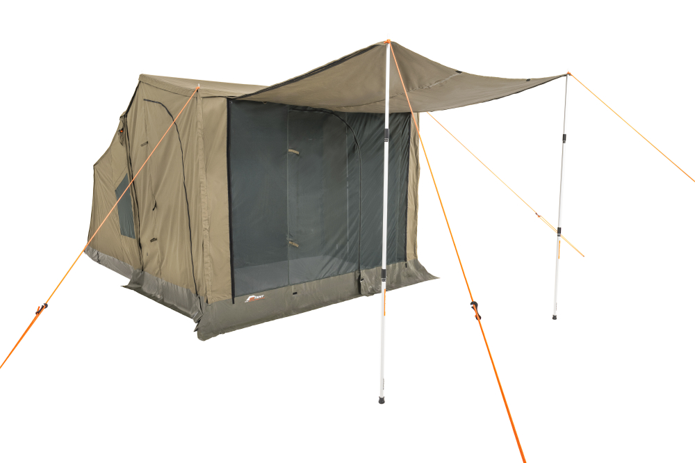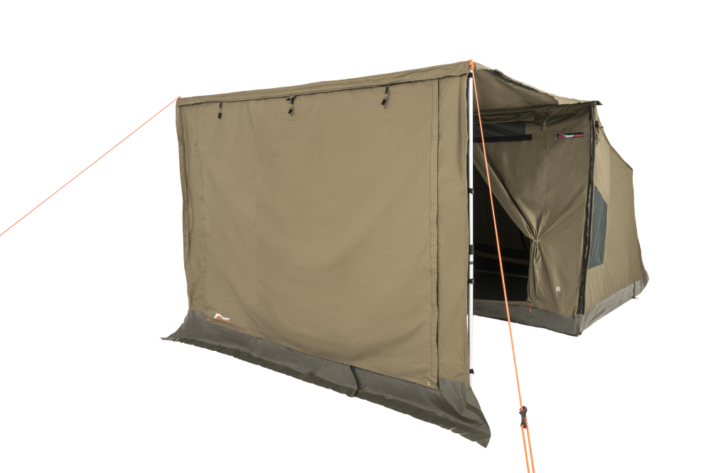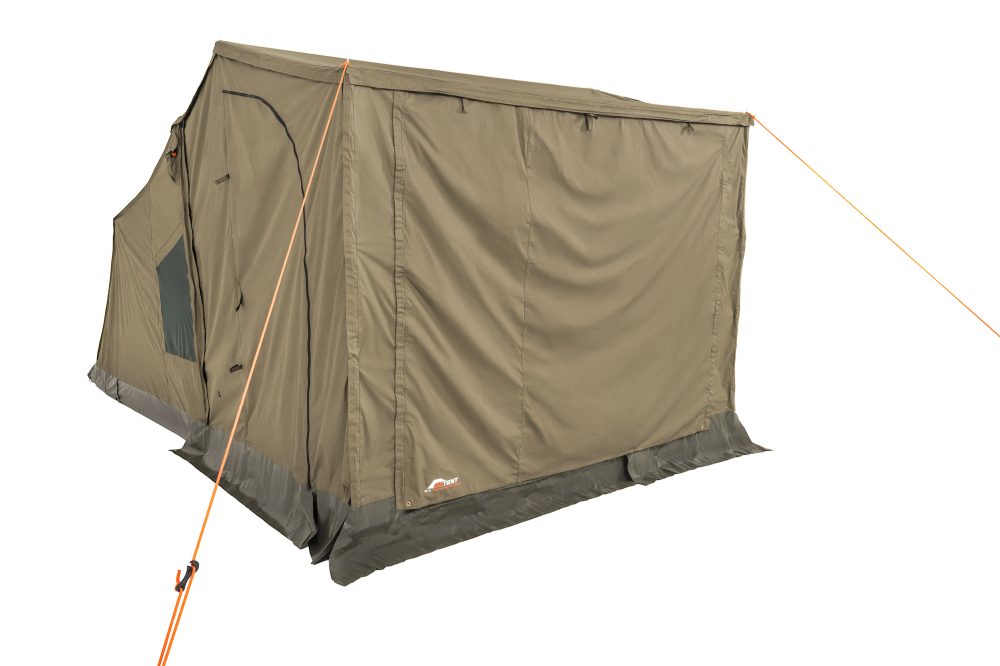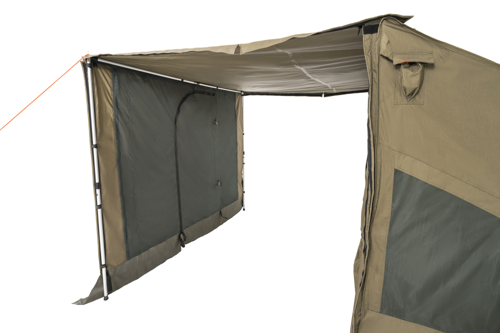 The OZTENT RV Deluxe Front Panel allows you to completely close in your awning when used in conjunction with the optional side panels. It simply zips to the front of the awning and the optional side panels. This panel has a large screened area with a zippered door and a drop down zippered canvas panel for when it rains. This drop-down panel can also be used as an extra awning with the use of extra poles (poles not included). Comes complete with a ridge pole, pegs and a carry bag.