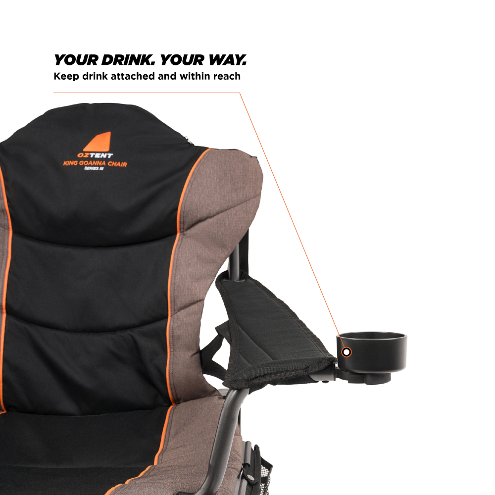 Customise with Oztent Positive Lock System™ and Lock-On Accessories. Keep your wine glass securely attached and within reach.