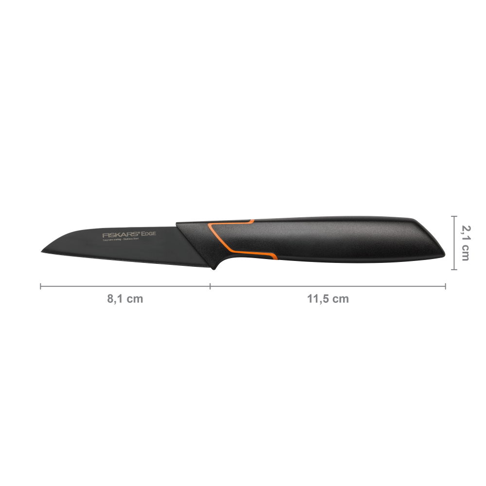 • Contents: 1x Fiskars peeling knife, Edge, Dimensions: Cutting blade length 8 cm, Total length: 20 cm, Weight: 53 g, Material: Steel/Synthetic Material, Colour: Black/Orange, 1003091