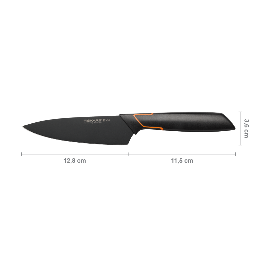 - Contents: 1x Fiskars Deba knife, Edge, Dimensions: Cutting blade length: 12 cm, Total length: 24 cm, Weight: 65 g, Material: Steel/Synthetic Material, Colour: Black/Orange, 1003096