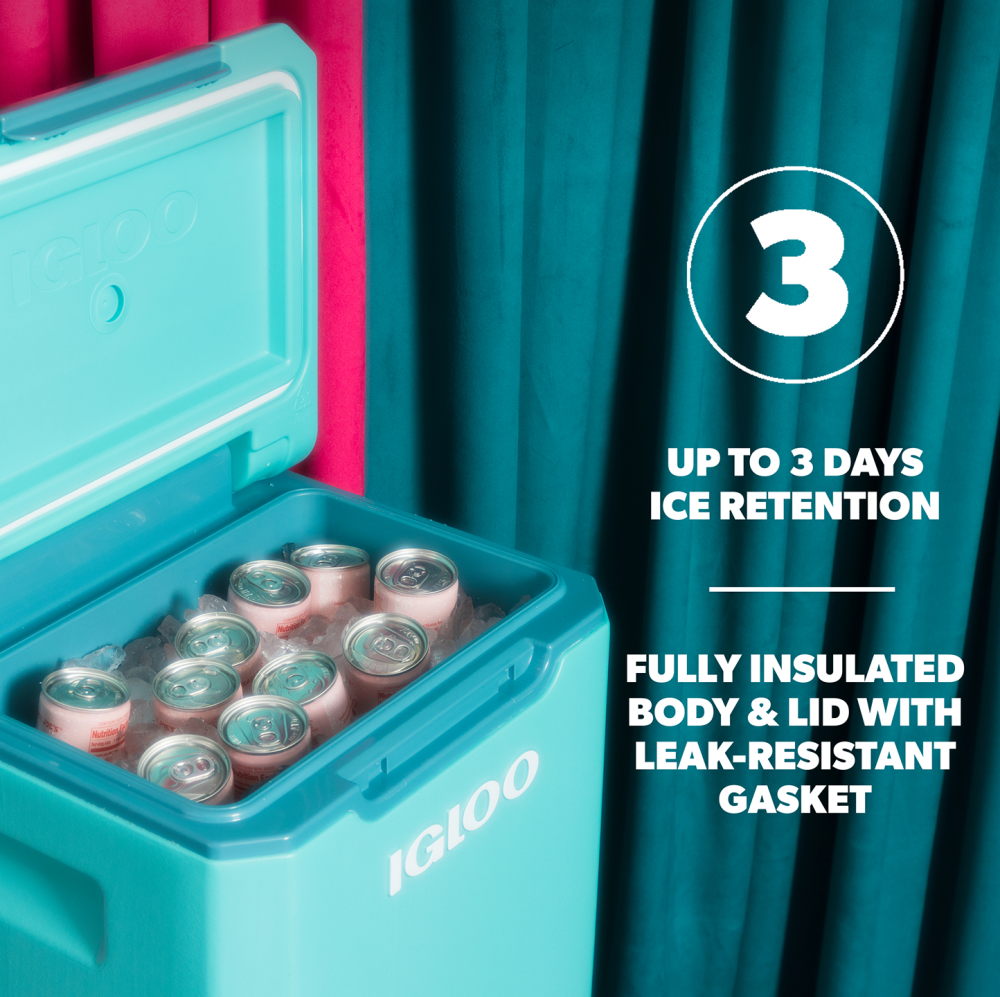The interior and lid are fully insulated to keep drinks at the ideal temperature, and a leak-resistant gasket and latch lid help to prevent messes. Keeps ice for up to 3 days.
