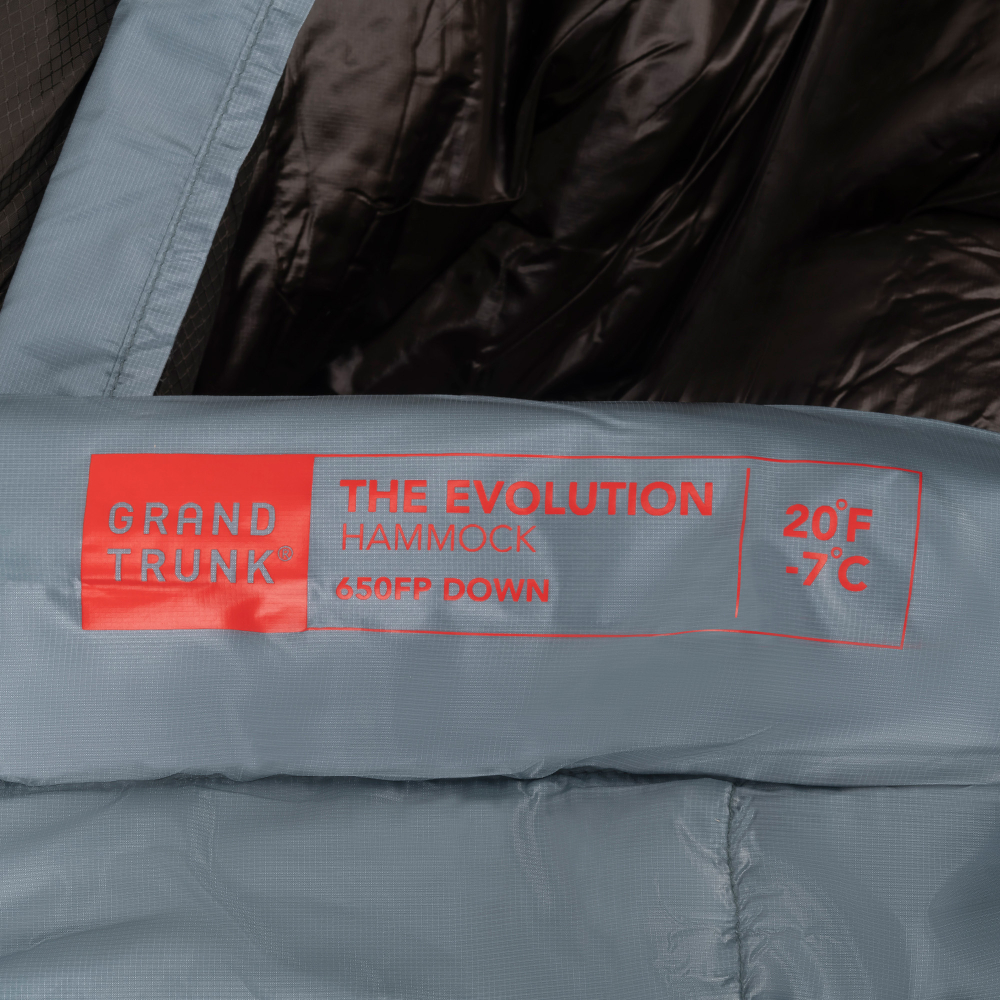 Pack less with The Evolution 20 Down Sleeping Bag Hammock. The Evolution integrates a down sleeping bag with a hammock, truly a match made in heaven!