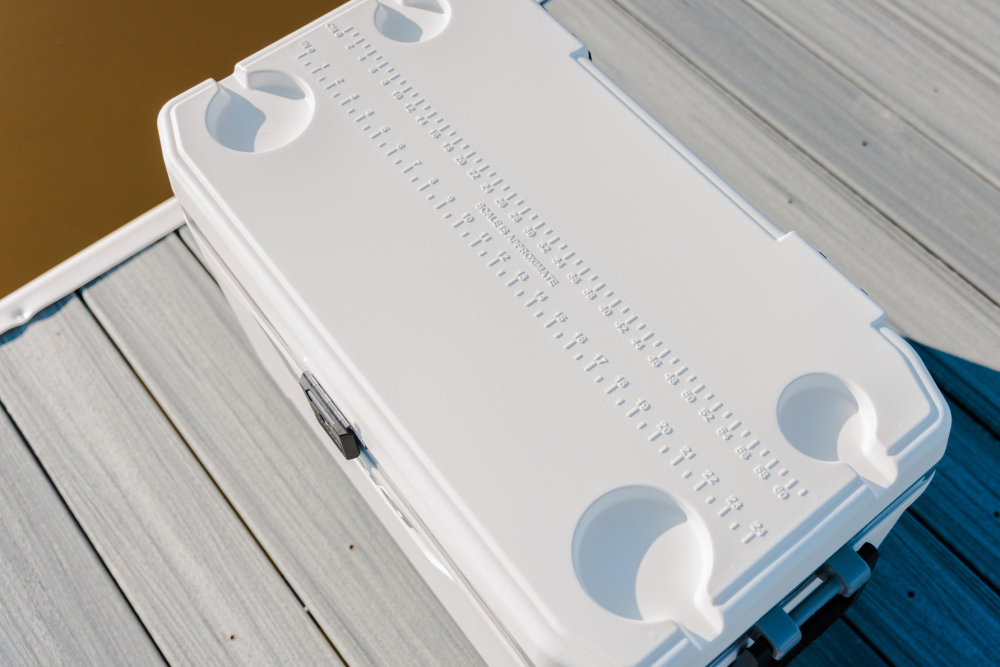 Durable and affordable, with great ice retention, the Marine Ultra Collection is designed to be reliable season after season. MARINE ULTRA 70 UV inhibitors protect against sun damage Foam insulated lid and body provides up to 5 days of ice retention performance Non-slip, comfort grip swing up handles add comfort and improved grip in wet conditions Hybrid latch is stainless steel where it matters in the hinge area while plastic in the snap area for longer life and a secure closure Hinges made with Riteflex resin, an impact resistant, highly flexible, temperature and chemical resistant material Threaded drain plug for hose hook up Fish ruler for measuring your catch THERMECOOL Foam Cleaner eco- friendly insulate 70 Quarts / 66 Litres Case Pack: 1 IG50548 White / Moonscape Grey SRP: 199.99