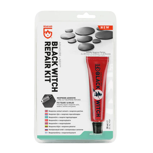 Black Witch (Aquasure + Neo ) Repair kit 28g Neoprene Adhesive + 3 Pre cut Patches
