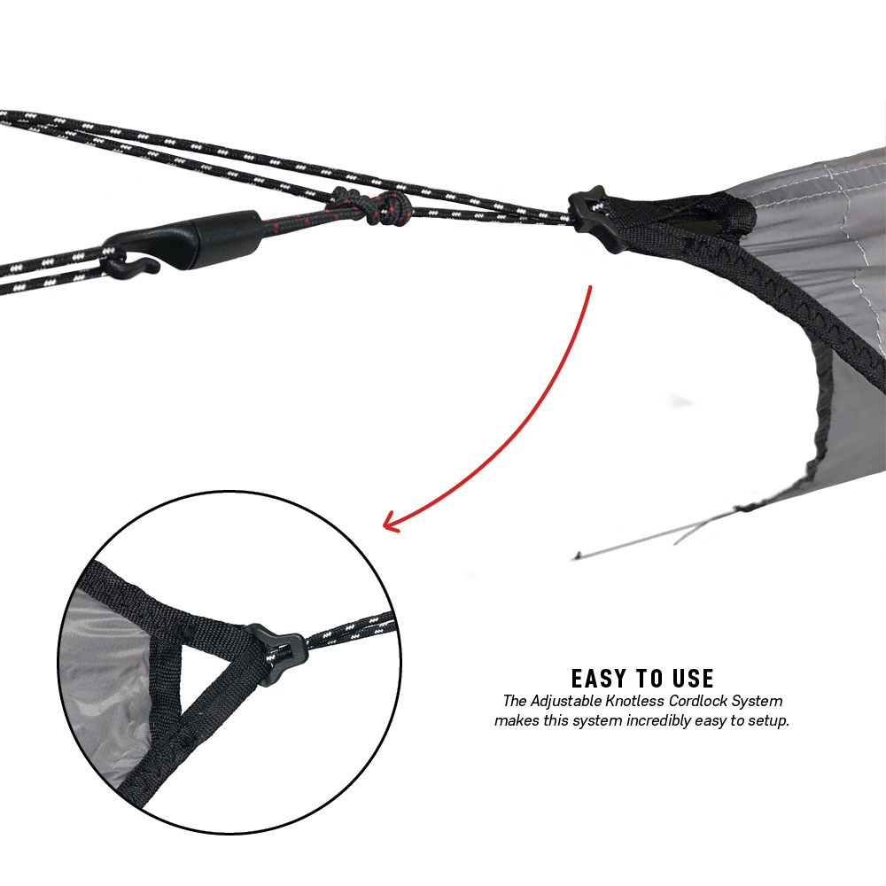 - Knotless Cordlock System makes it super easy to hang
